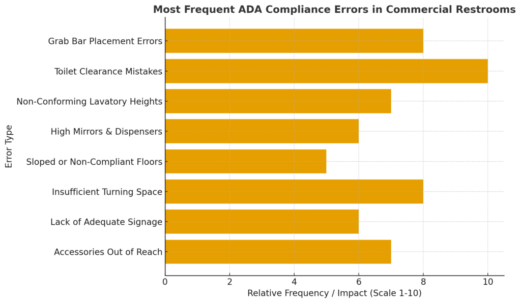 Following are some of the most frequent ADA compliance errors in commercial restrooms, why they happen, and—most importantly—how to prevent them.